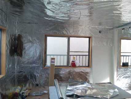 付け焼刃っぽく見えますが、完璧にアルミシートで躯体や壁を封止しています。