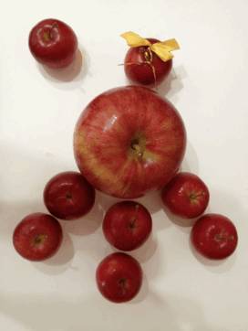 ママがピコポンのために、大小のりんごを買ってきました